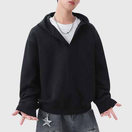 假兩件式大領口拼接 重磅連帽衛衣 [CBH-1024]
