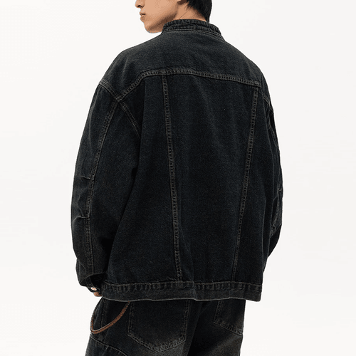 復古水洗做舊縫線設計 純棉半領長袖牛仔外套 [CBJ-1011]