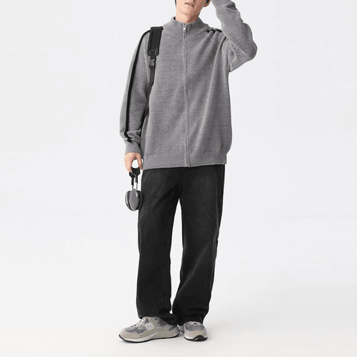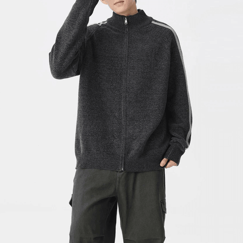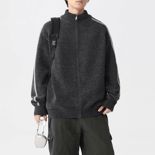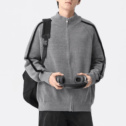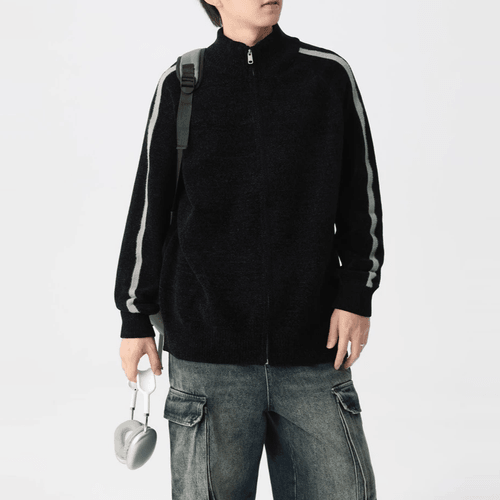復古手袖條紋撞色縫紉 半領針織開胸外套 [CBJ-1026]