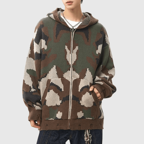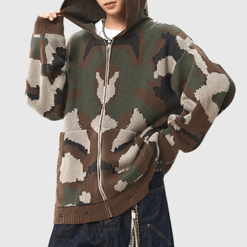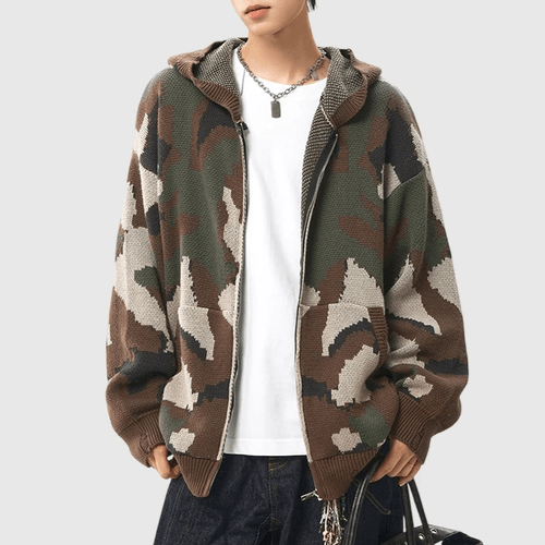 迷彩色系設計 純棉針織外套 [CBJ-1068]