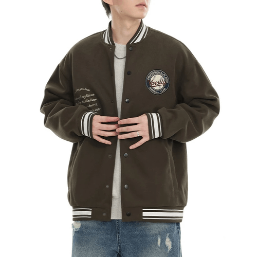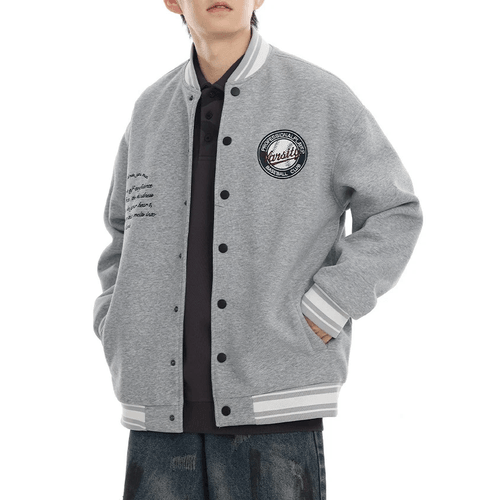 日系襟章細文字刺繡 長袖棒球外套 [CBJ-1351]