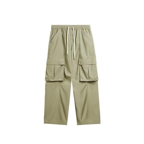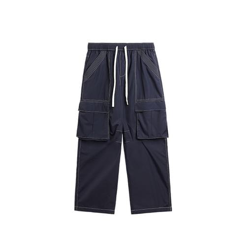 撞色明線雙側袋工裝 機能闊腿直筒長褲 [CBP-1062]