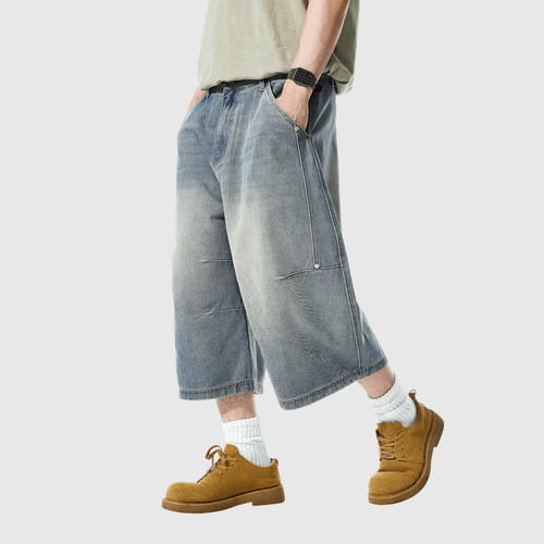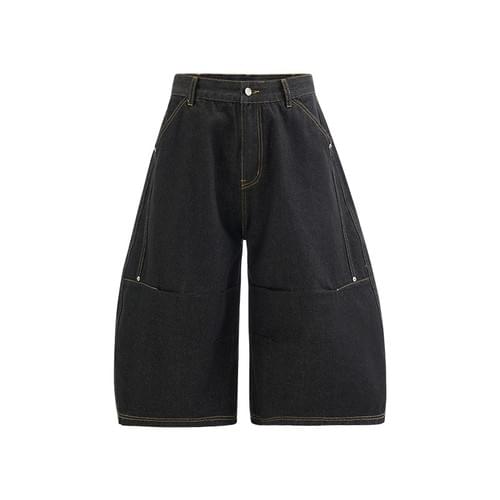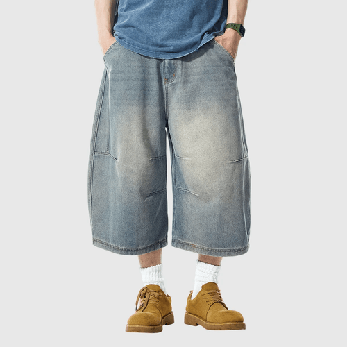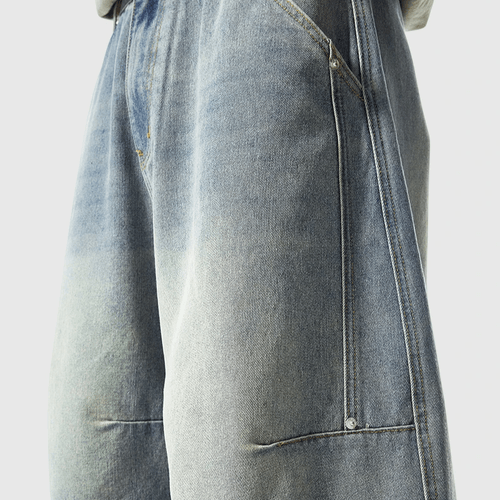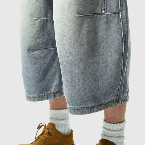 基礎復古洗水 純棉牛仔錐形七分褲 [CBP-1083]