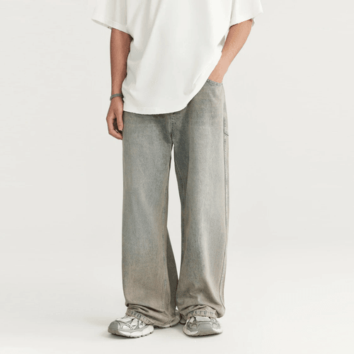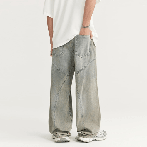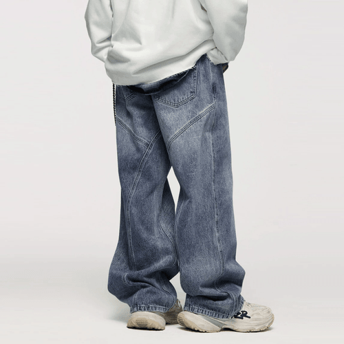 立體不規則縫紉設計 純棉闊腿直筒牛仔褲 [CBP-1085]