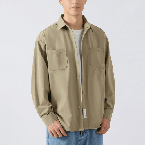 日系基礎純色雙前袋工裝 長袖恤衫 [CBS-1016]