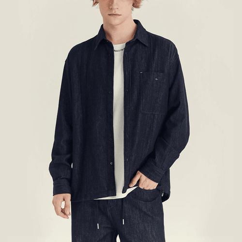 前袋刺繡縫線設計 長袖牛仔恤衫 [CBS-1020]