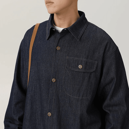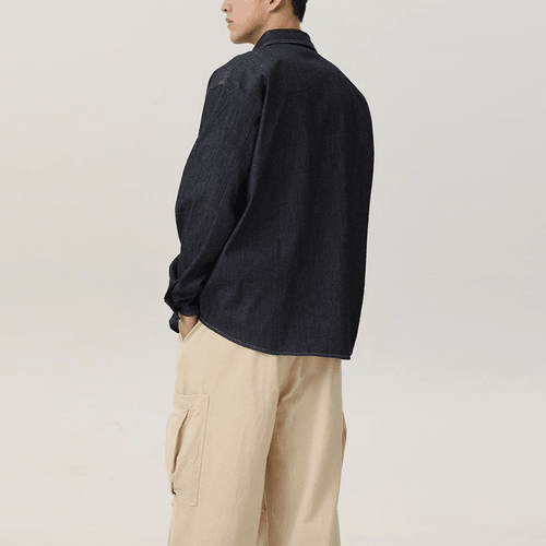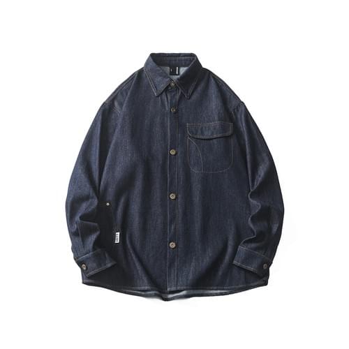復古前袋鈕扣設計 長袖牛仔恤衫 [CBS-1022]