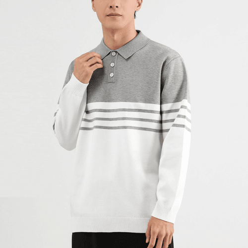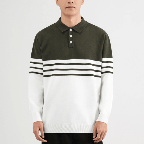 半身色系撞色條紋編織紋理 針織 POLO 冷衫 [CBK-1015]