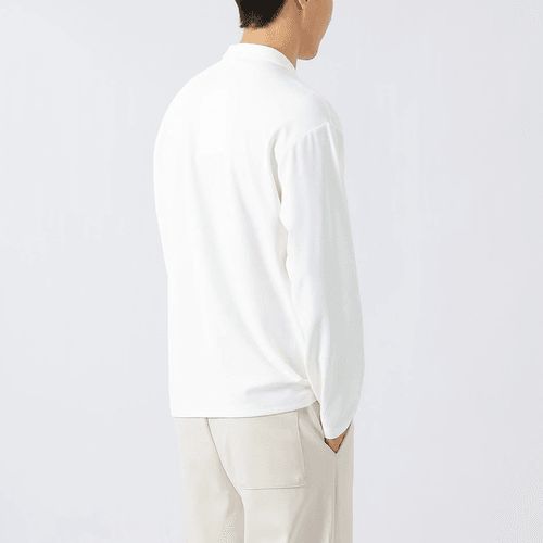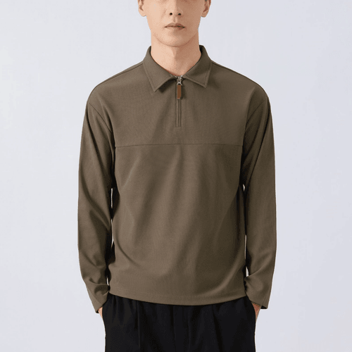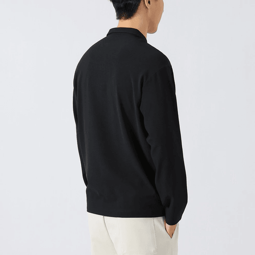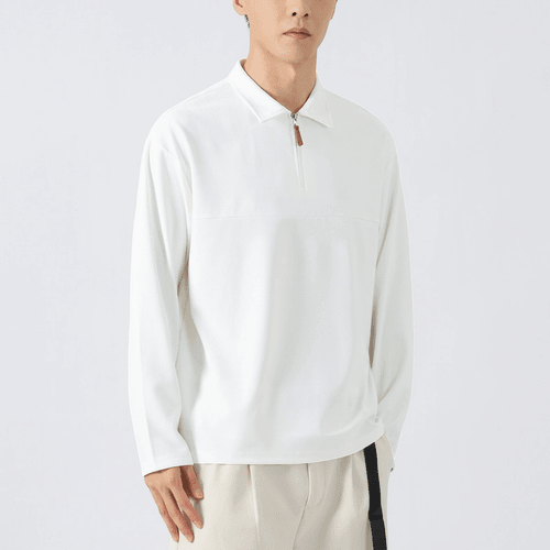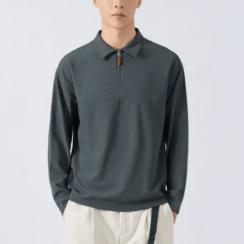 皮革撞色半拉鍊 重磅肌理紋理長袖 POLO T-Shirt [CBT-1119]