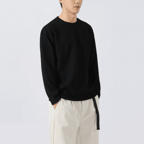 日系基礎純色粗線肌理紋理 長袖 T-Shirt [CBT-1224]