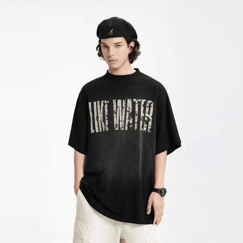 復古洗水裂紋噴墨 純棉短袖 T-Shirt [CBT-1235]
