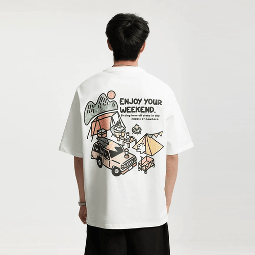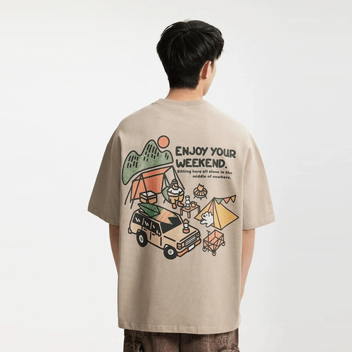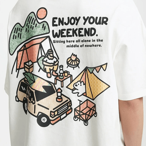 戶外露營前後圖案印燙 純棉短袖 T-Shirt [CBT-1241]