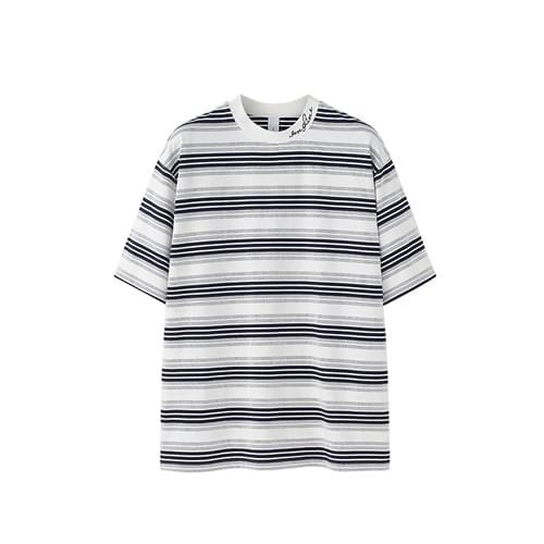 編織撞色條紋設計 短袖 T-Shirt [CBT-1270]
